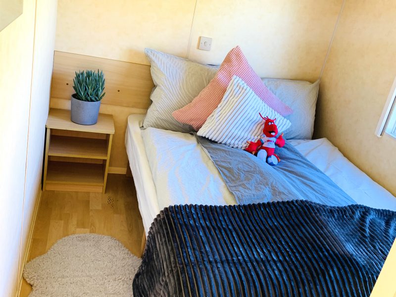 Die Schlafräume befinden sich jeweils am Ende des Mobilheims, somit kann jeder seine nächtliche Ruhe genießen. Jeder Schlaftrakt hat zudem ein eigenes Badezimmer mit großer Dusche.