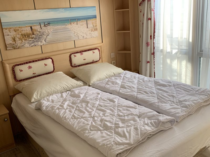 Die Schlafräume befinden sich jeweils am Ende des Mobilheims, somit kann jeder seine nächtliche Ruhe genießen. Dazu gibt es ein separates WC, als auch eine separate Dusche! Die Wassertemperatur ist über einen Regler im Wandschrank den individuellen Vorlieben anzupassen !